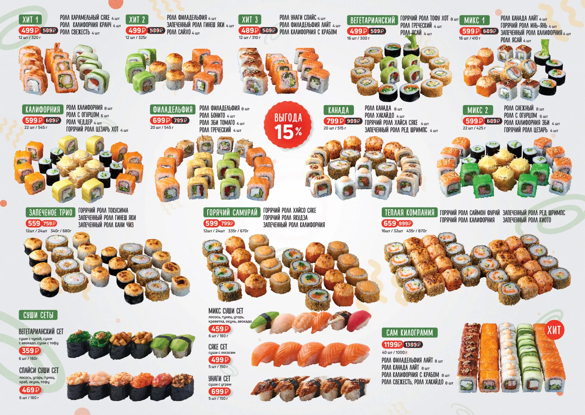 Оформление меню суши-бара «Roll Wok Club» в Минусинсе
